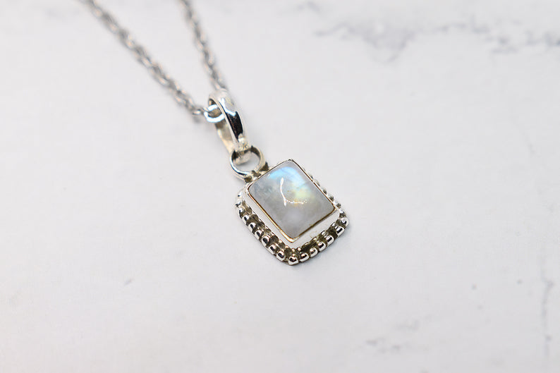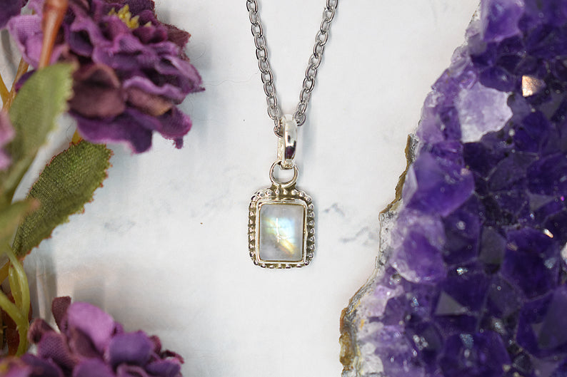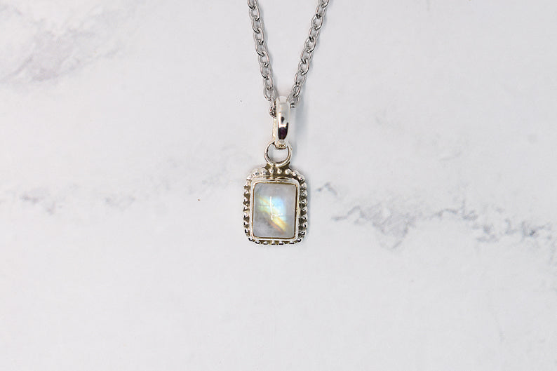 Voici notre pendentif en pierre de lune en argent sterling, un mélange enchanteur d'élégance et de magie lunaire. Doté d'une pierre de lune fascinante enchâssée dans de l'argent sterling 925, il est suspendu à une chaîne en acier inoxydable durable. Parfait pour insuffler une touche d'allure mystique et de sophistication à n'importe quelle tenue, c'est un ajout distinctif à votre collection de bijoux.