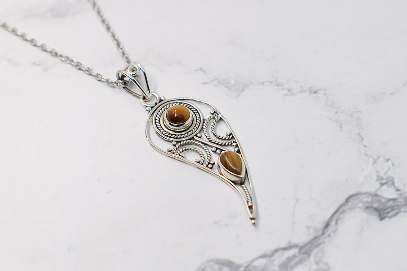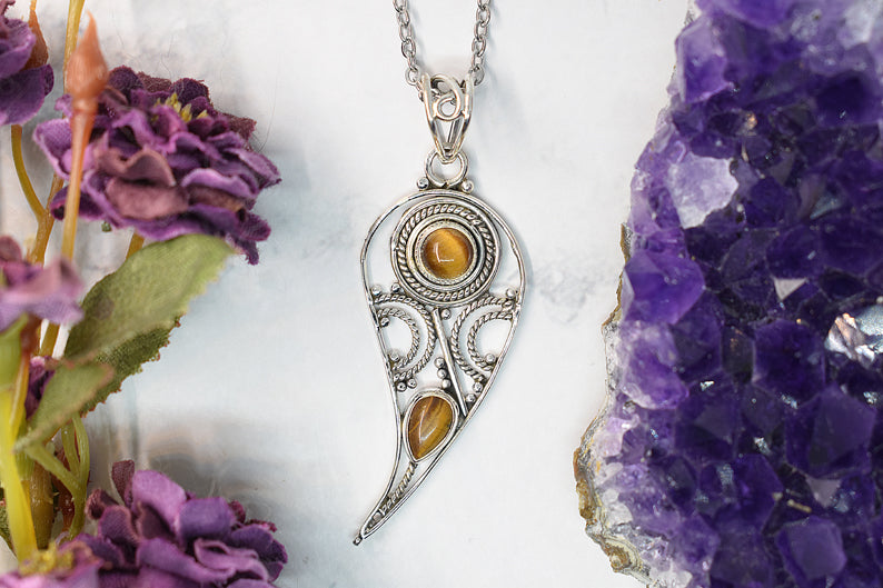 Le pendentif en argent sterling 925, orné d'une pierre d'œil de tigre captivante, incarne une élégance durable et un charme audacieux et distinctif.
