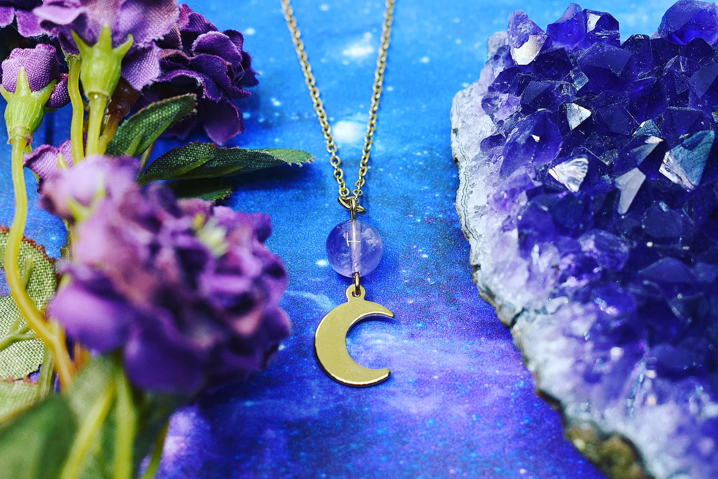 Embrassez le mystère nocturne avec notre pendentif croissant de lune, orné d'une délicate pierre améthyste. Ce joyau de la nuit est conçu pour capturer l'essence de la lune et la tranquillité de l'améthyste, symbole de sagesse et de protection. Porté près du cœur, il est suspendu à une chaîne en acier inoxydable, lui assurant éclat et durabilité dans le temps. Cet accessoire est une promesse d'élégance et d'allure mystique, un ajout sublime à toute collection de bijoux.