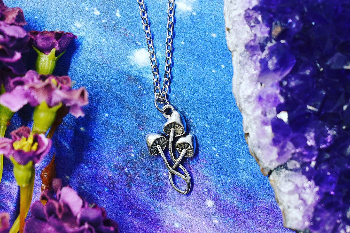 mushroom necklace, magic jewelry, enchanting jewelry, wicca jewelry, goth