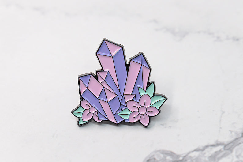 Enamel pin adorned with crystals and a flower. An elegant combination of nature and sparkle, this pin adds a touch of sophistication. Perfect for special occasions or to elevate an everyday outfit.